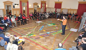 Ein interdisziplinäres Planungsteam (Vertreter aus dem Schulverbund Pustertal, Sozialdienste, Pädagogisches Beratungszentrum, Explora, Tagesgruppue Grisu - la strada- der Weg, Amt für Berufsberatung, Berufsbildungszentrum) hatte bereits im Vorfeld Bedürfnisse von Kindern und Jugendlichen gesammelt, um sie als Leitfaden der Tagung zugrunde zu legen. Ergänzt wurden diese Bedürfnisse noch durch konkrete Erfahrungen der Tagungsgäste. So war es auch nicht überraschend, dass Moderator Dr. Karlheinz Imhäuser, Vorstand der Montagsstiftung „Jugend und Gesellschaft" das mittlerweile inflationär verwendete afrikanische Sprichwort „Um ein Kind zu erziehen, braucht es ein ganzes Dorf" kurzerhand umdrehte in „Um ein Dorf zu erziehen braucht es ein GANZES Kind". Womit zum Ausdruck gebracht war, dass sich Kinder- und Jugendarbeit auf die konkreten Anliegen von Kindern und Jugendlichen auszurichten hat und nicht umgekehrt.